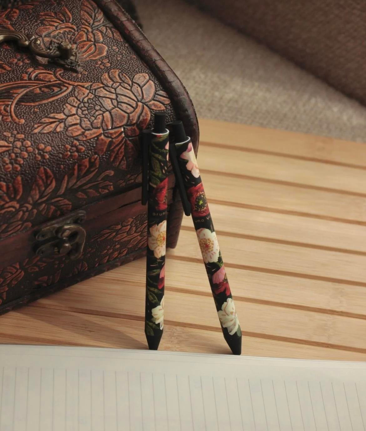 Nova Crafts Otantik Beyaz-Kırmızı Çiçekli Yaldızlı Tükenmez Kalem